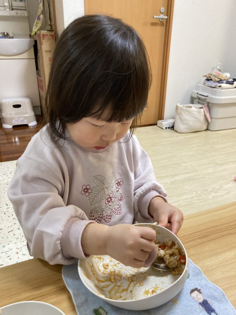 スプーン上手に使ってほとんど1人で完食できました☺️
