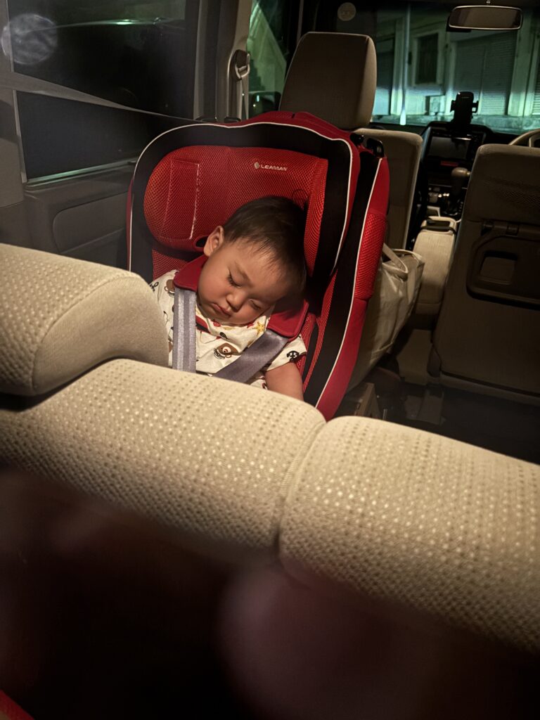 移動で寝てしまいましたが、機嫌よく起きてくれました。