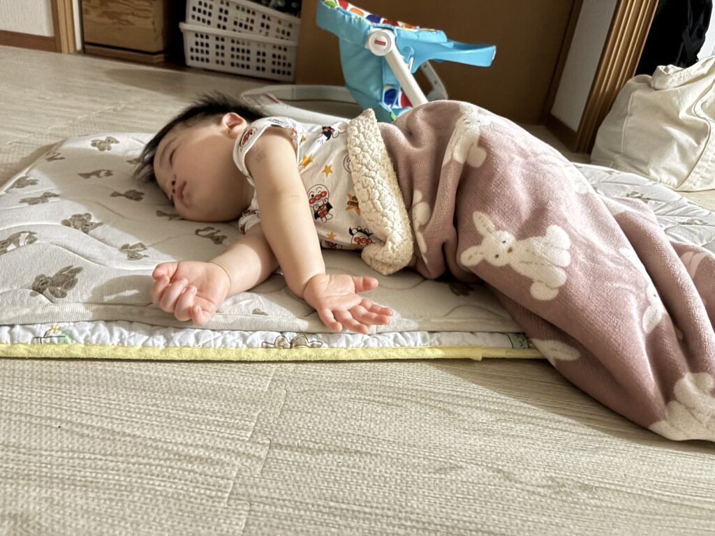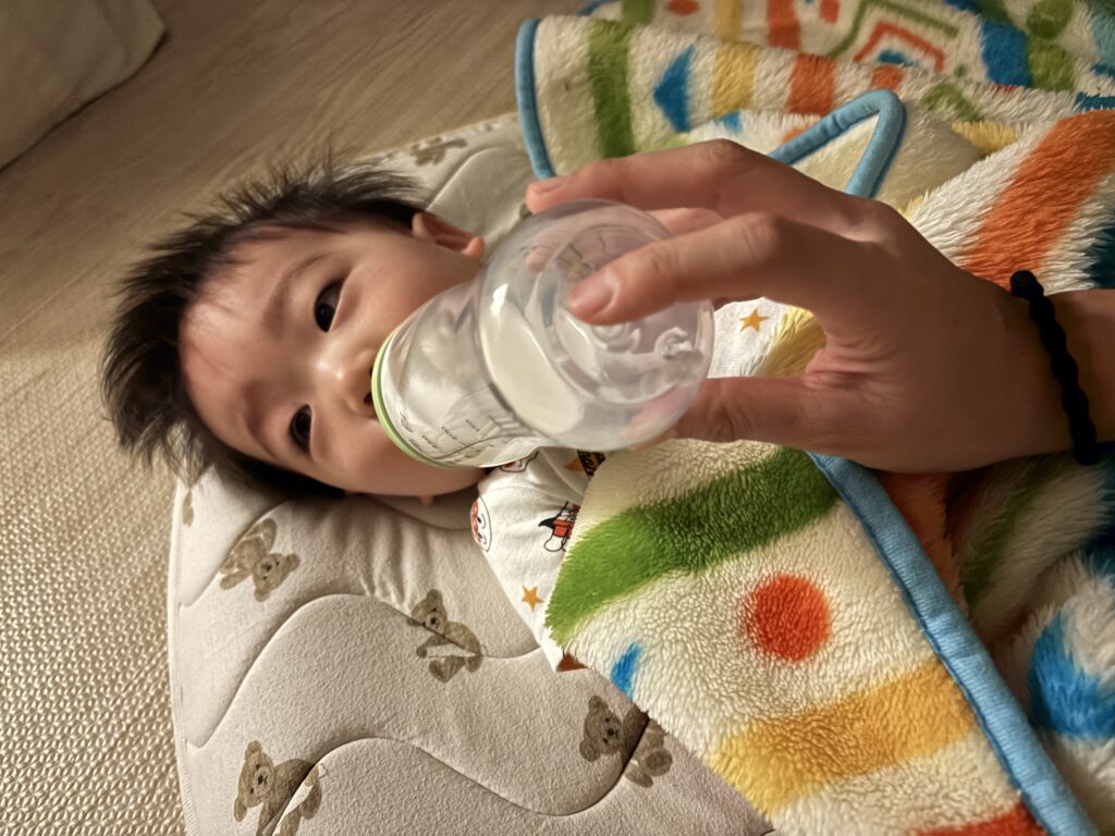4時に目を覚まし、ミルクを飲んで1時間ゴソゴソ、モゾモゾ。