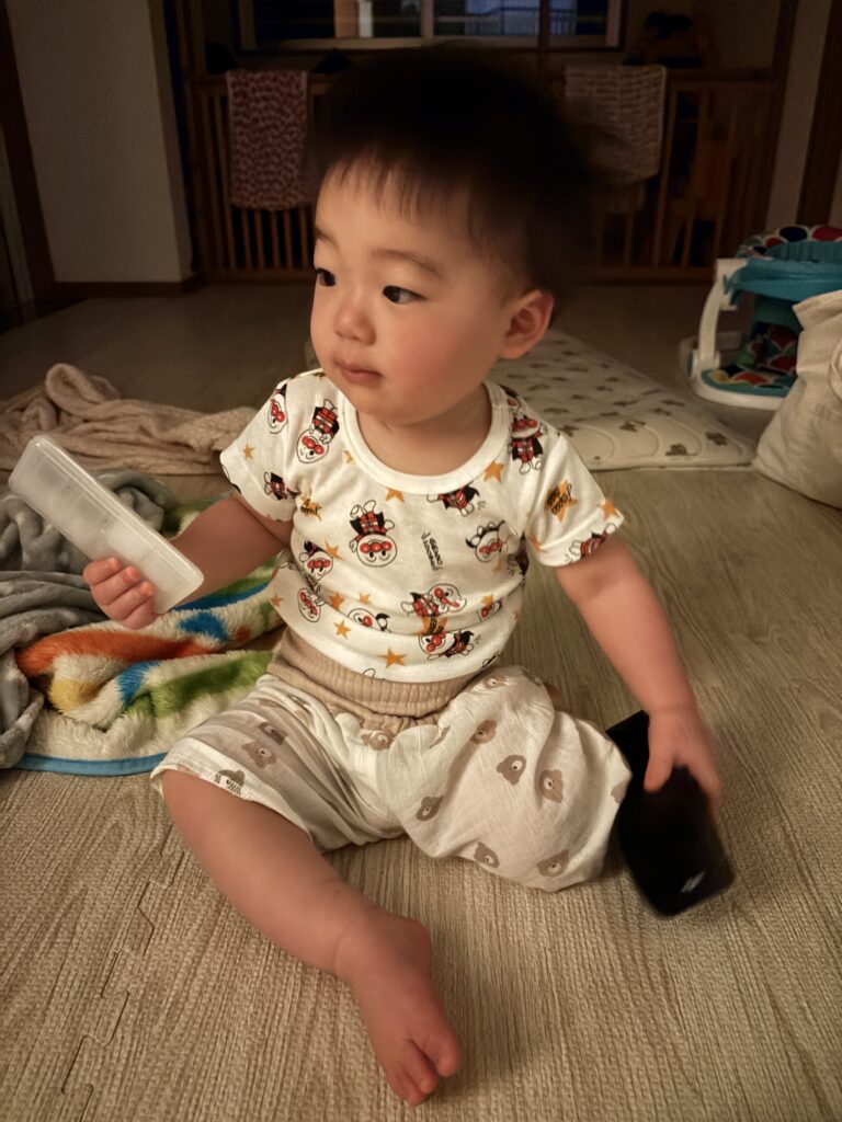 前日の夜は眠たくて遊べなかったお部屋のおもちゃで遊べたね🧸