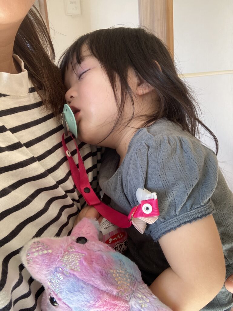 と思いきや、妹ちゃんがぐずぐずしていて。もしかして眠たいかな?旅行で疲れているかな?と思いゆらゆらトントンしていくと、10分ほどで寝ちゃいました😴